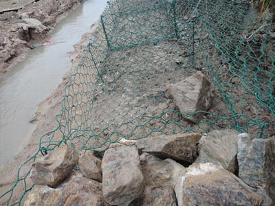 綠格網(wǎng)墊又名綠格網(wǎng)箱,石籠網(wǎng)箱,石籠網(wǎng)。是由機(jī)械編織而成的雙絞六邊形綠格網(wǎng)片組合成德一種結(jié)構(gòu)體。在工程現(xiàn)場(chǎng)向綠格網(wǎng)墊中填充石頭以形成柔性的、透水性的、整體的防護(hù)結(jié)構(gòu),廣泛用于河道邊坡抗沖刷、抗侵蝕等防護(hù)工程中。